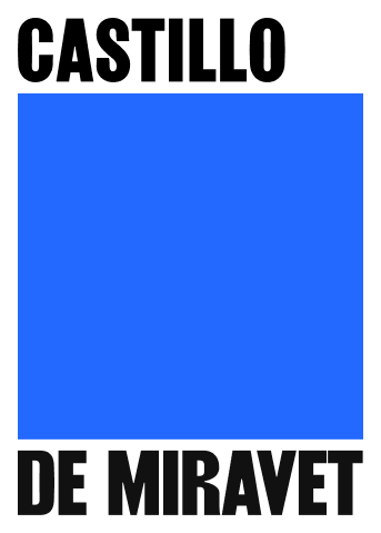 Recreación hipotética de una vista aérea general del castillo, situado sobre una colina y con referencia del río Ebro a la derecha, entre los siglos XII i XIV.